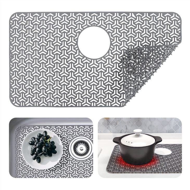 2. Otporan na toplinu: Silikon je otporan na toplinu, tako da svoju podlogu za sudoper možete koristiti kao podlogu za zaštitu radnih ploča od vrućih lonaca i tava.