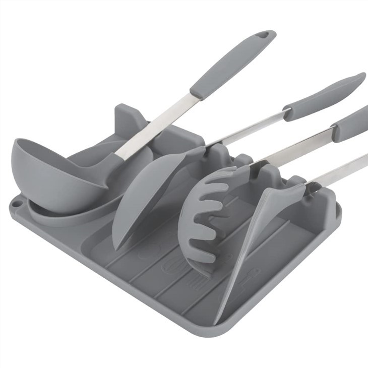 2. Ovaj kuhinjski držač za žlicu idealan je za sav vaš pribor za jelo i može držati do 4 odjednom. Veći utori lako primaju drvene žlice, hvataljke i kutlače. Neophodno je imati ovaj višenamjenski stalak za kuhinjske lopatice za jednostavno roštiljanje, pečenje, prženje i kuhanje. Ovaj kuhinjski držač žlica služi i kao fantastičan držač žlica na ploči štednjaka.